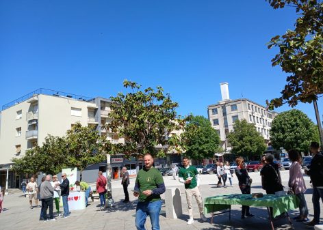PAZIN Subotnje jutro i u Pazinu je špica, dok se građani ne povuku kući na ručak. Tu su priliku iskoristile sve tri političke liste kako bi prolaznicima davali letke...