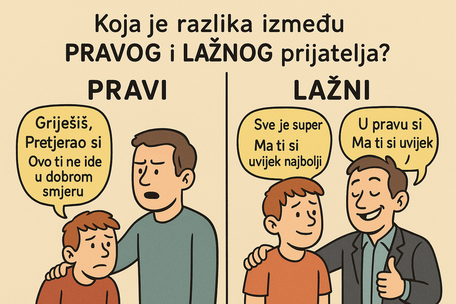U vremenu kada se prijateljstva često svode na “lajk” ili kratku poruku podrške, pravo je pitanje: znamo li još prepoznati tko nam je pravi, a tko lažni prijatelj? Naizgled jednostavna razlika krije duboku istinu o ljudskim odnosima — jer pravi prijatelji nisu oni koji nam uvijek govore ono što želimo čuti, već oni koji nam kažu ono što moramo čuti.