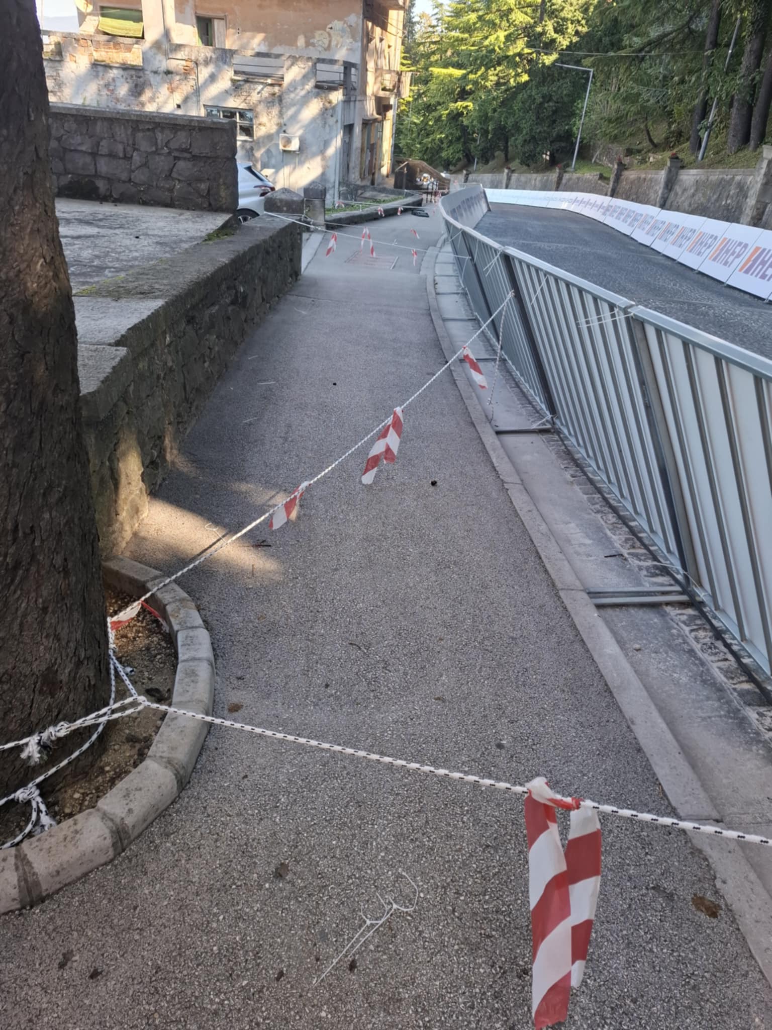 No, probleme su nenadano imali i pješaci u starom gradu zbog niza prepreka koje su im postavili organizatori. Na usponu za stari grad (Uspon Alda Negrija prema Titovom trgu), na jedinoj pješačkoj komunikaciji, postavljeni su reklamni panoi koji su s užadi vezani za stabla.